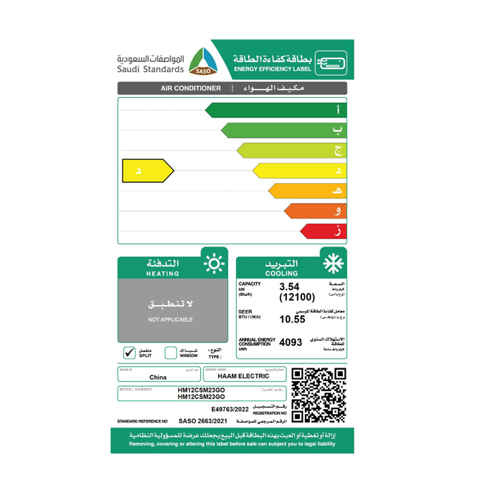 خصائص فنية عن مكيف هام سبليت الذهبي 12 الف وحدة ريش ذهبية بارد :
