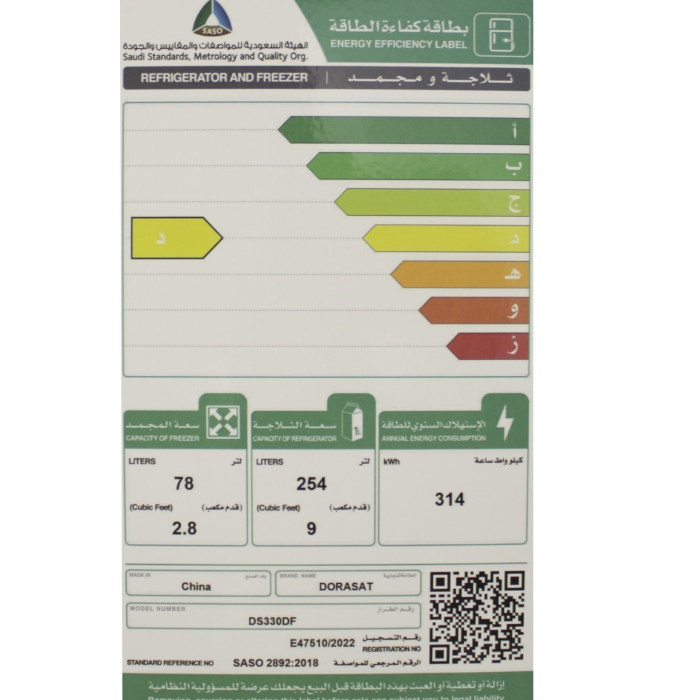 ثلاجة دورا سات بابين 7.3 قدم - ابيض السعر الأصلي هو: 1.150 ر.س.السعر الحالي هو: 860 ر.س.