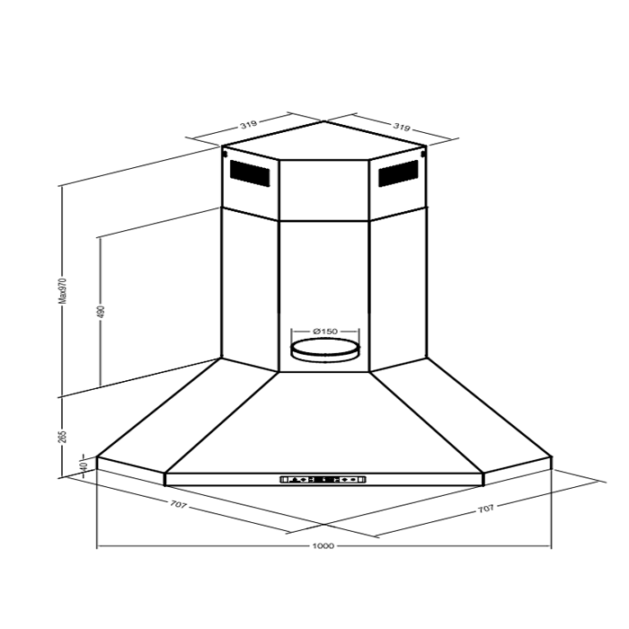 خصائص فنية عن شفاط مطبخ ماستر جاز زاوية 70 سم 9 سرعات :