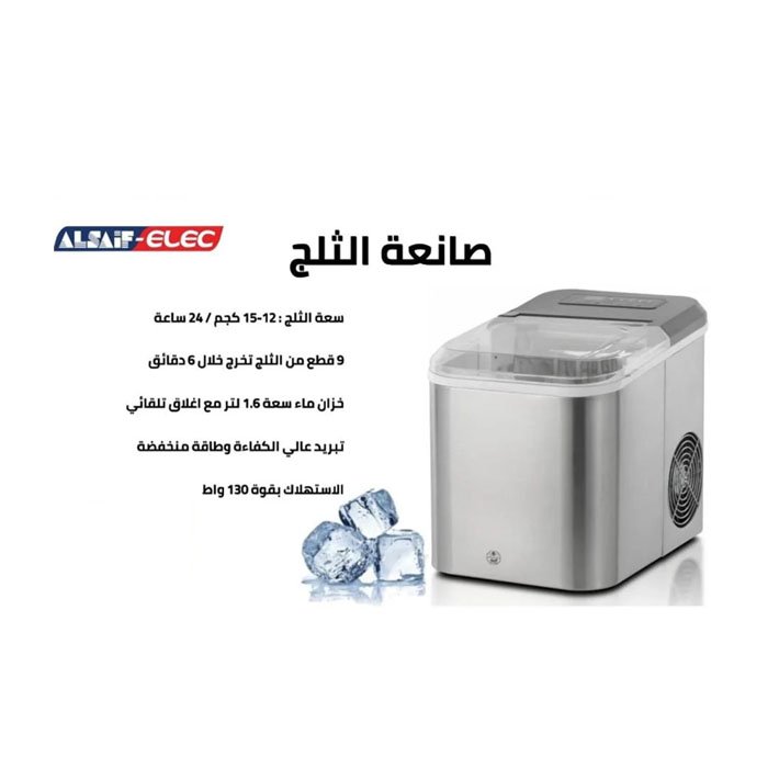 مواصفات اساسية عن صانعة الثلج السيف 1.6 لتر 130 وات ستيل :