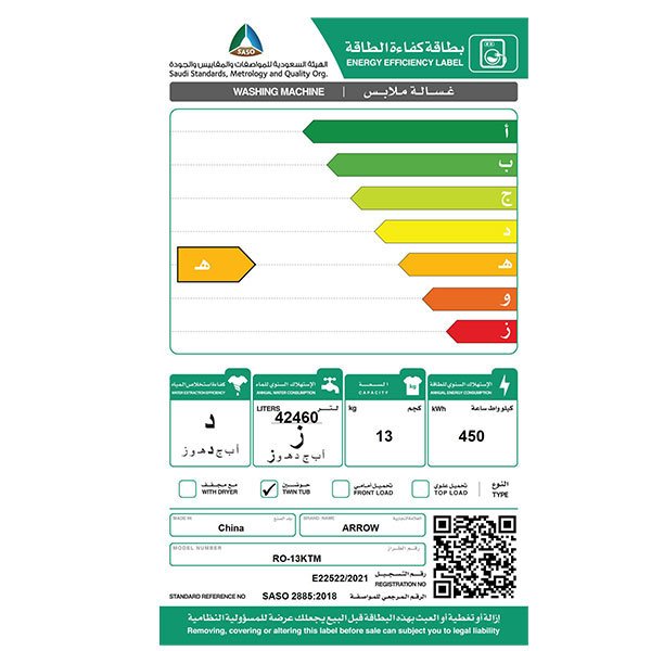 خصائص فنية عن غسالة حوضين ارو 13 كيلو – أبيض :