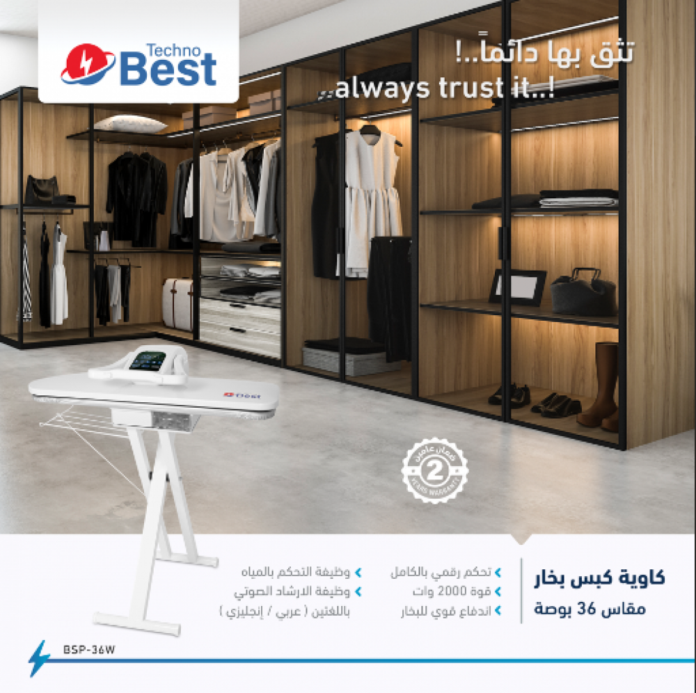 مكواه بخار كبس تكنو بيست 36 بوصة أبيض