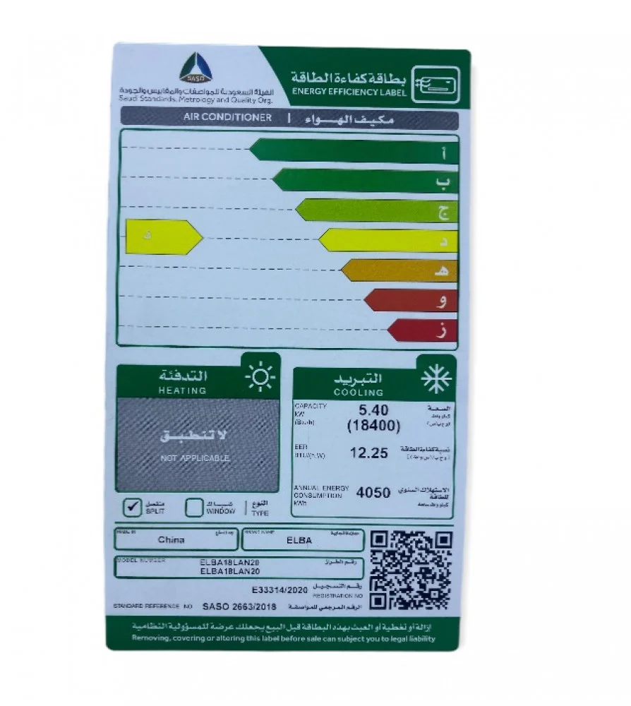 خصائص فنية عن مكيف سبليت إلبا 18400 وحدة – بارد :