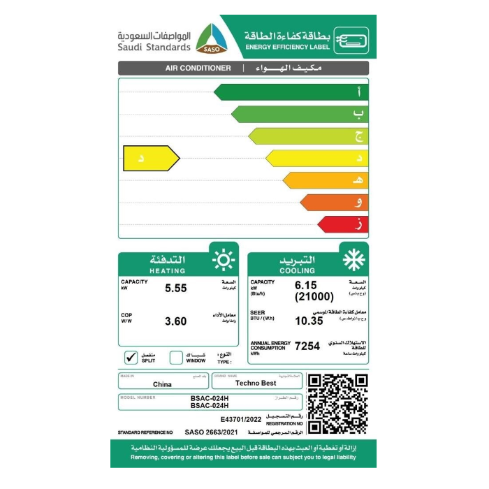 مكيف سبليت تكنو بيست 24000 وحدة حار و بارد
