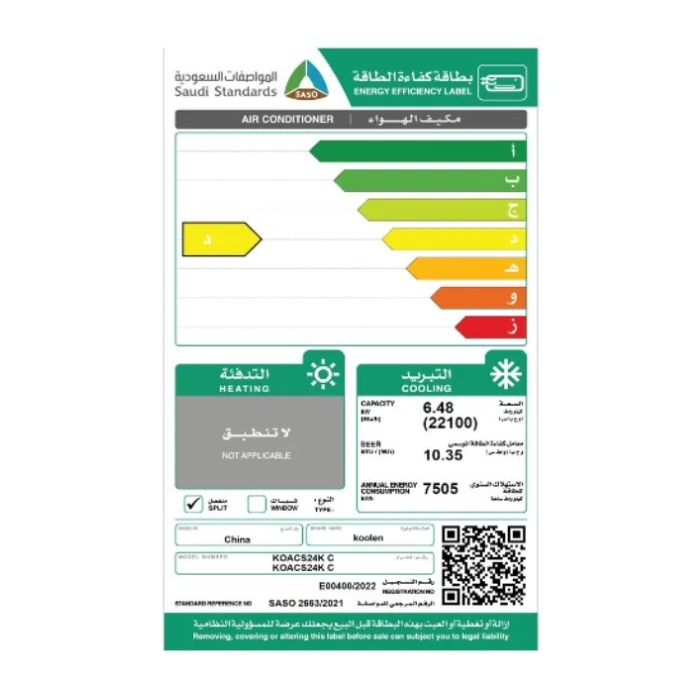 خصائص فنية عن مكيف سبليت 24 الف وحدة كولين بارد – مصنع جري