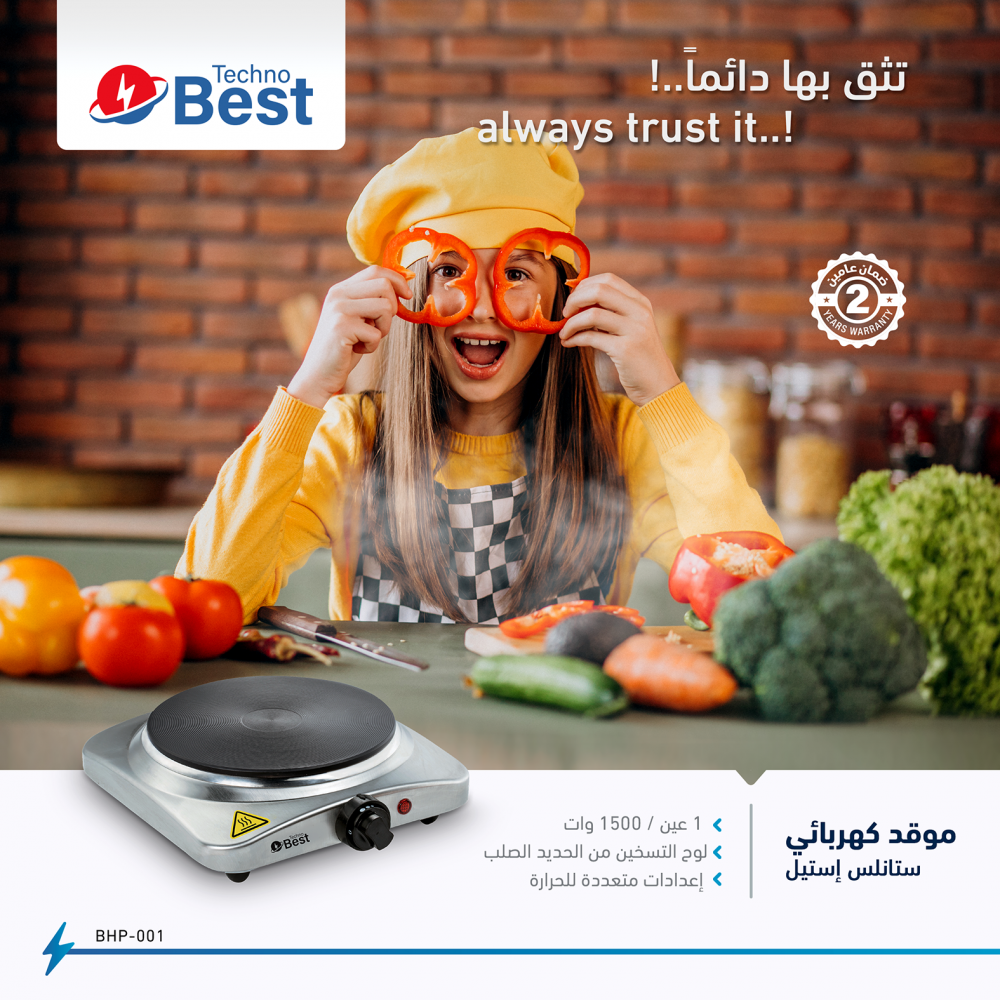 مواصفات اساسية عن موقد كهربائي تكنو بيست 1 عين 1500 وات ستيل :